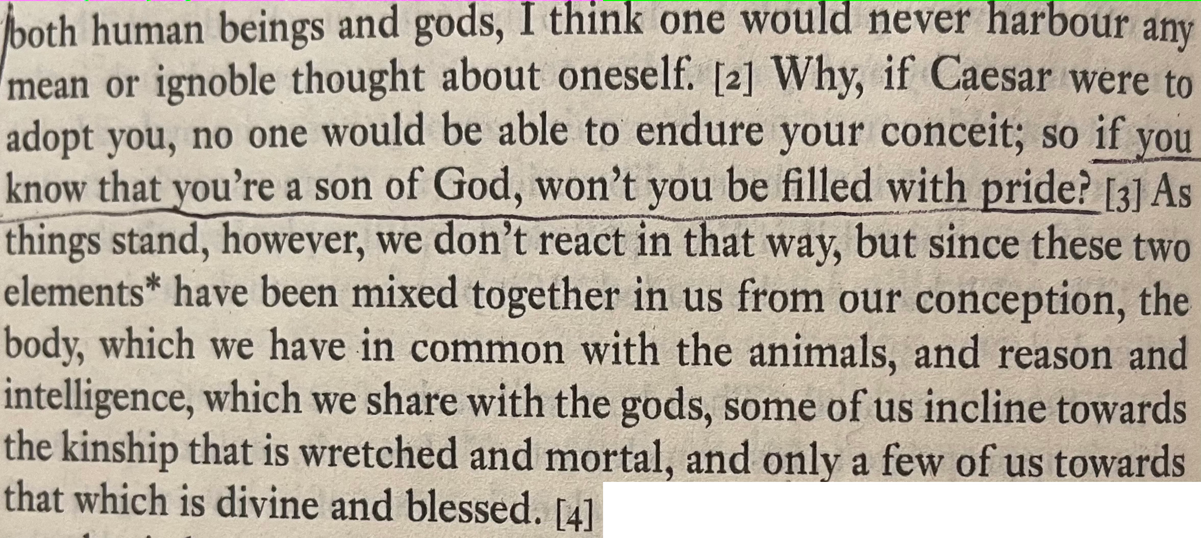 We can see in the later part of that passage the emphasis that the stoics placed on reason being the higher, more divine trait — the one that sets us apart from animals.